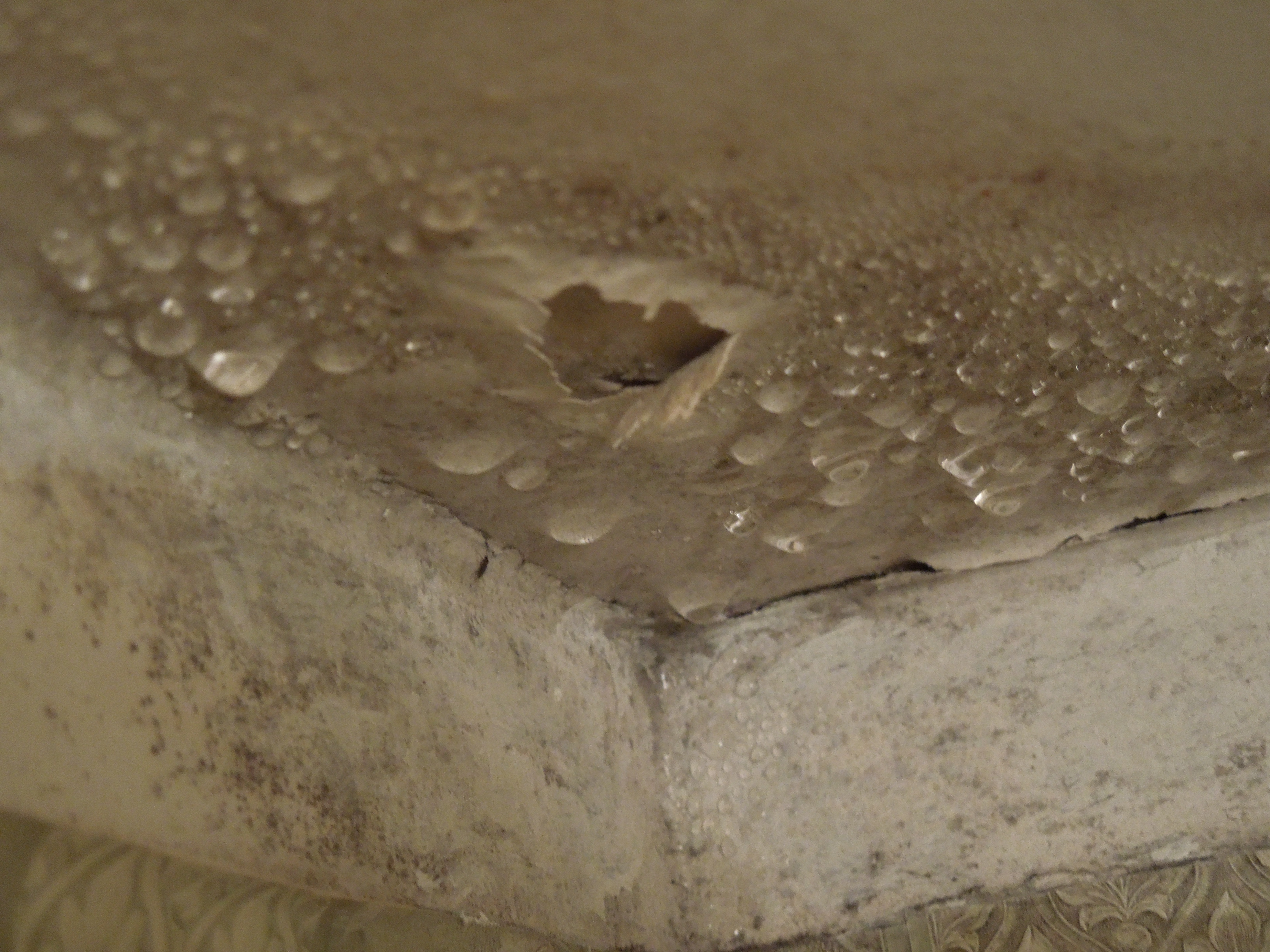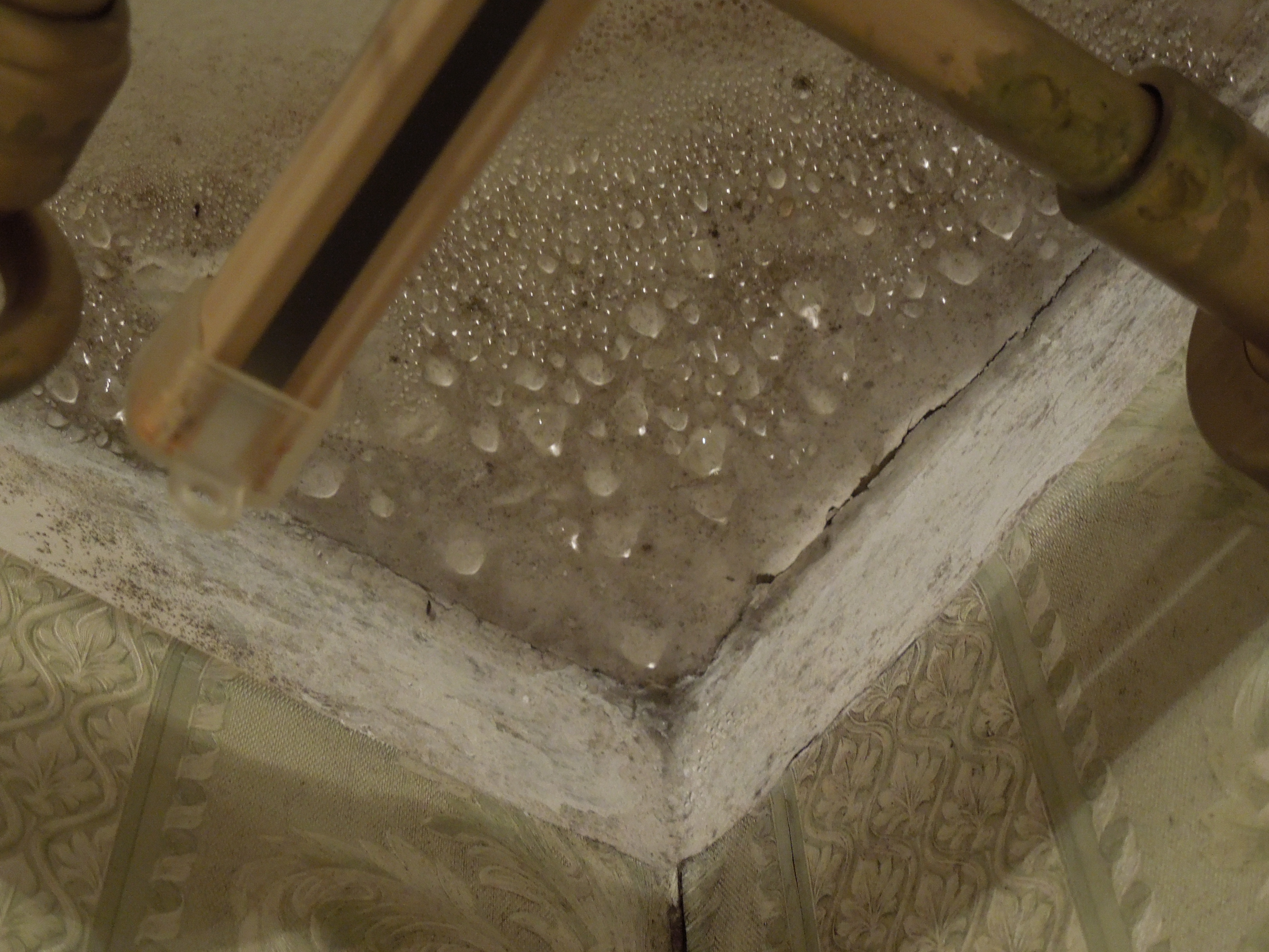 Antud fotodel on kujutatud ühe üheksanda korruse korteri lagi. Muudele põhjustele lisaks on suur süü sellise olukorra tekkimisel ebapiisaval ventilatsioonil, mille põhjustavad õhutihedad plastikaknad, osaline väljatõmbe sulgemine jne.. Palun kontrollige, et ei oleks takistatud õhu liikumine väljatõmmete juurde köökides ja WC-des.